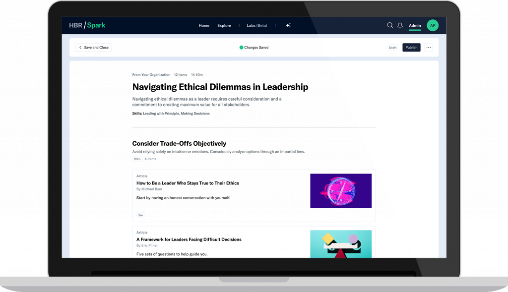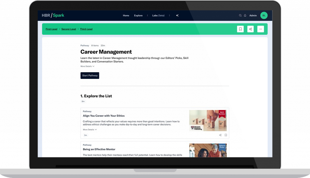 Curate custom pathways for learners in your organization by using Harvard Business Publishing content, creating your own posts, and adding links.