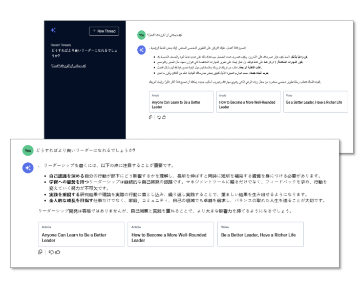 - Get a synthesized response in the language you asked the question in plus resources relevant to the question in English.