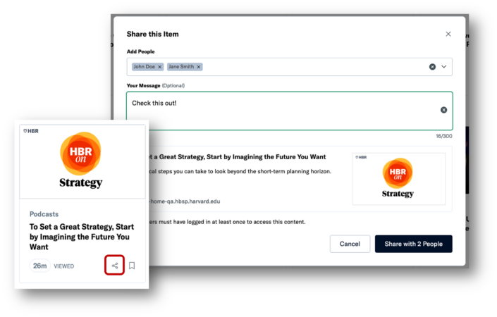 Share content with other learners in your organization with the Share feature in HBR Spark